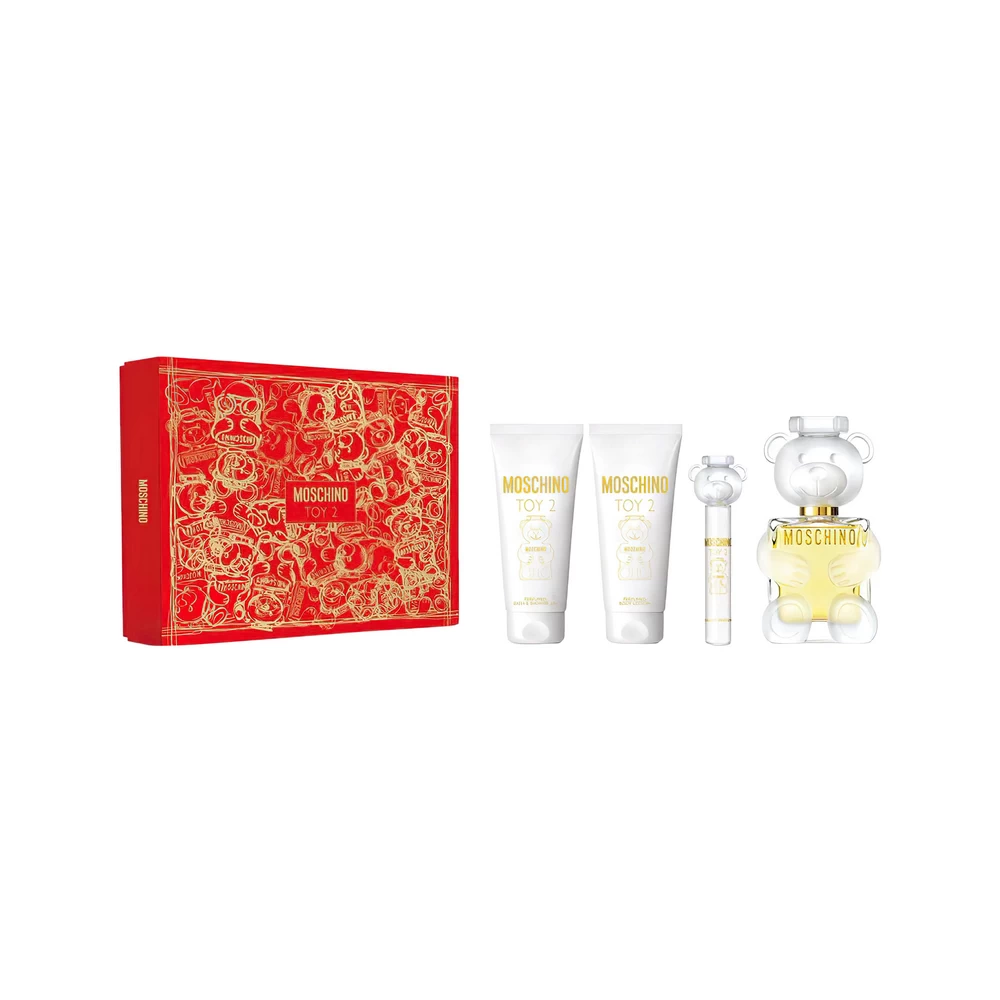 Подарочный набор Moschino Toy 2 включает в себя 100 мл парфюмерной воды, 100 мл геля для душа, 100 мл лосьона для тела и удобный дорожный спрей объемом 10 мл — это идеальный подарок для себя или для кого-то особенного. Независимо от того, готовитесь ли вы к выходу в свет или расслабляетесь вечером, этот полный набор подарит вам роскошное наслаждение ароматом от начала до конца.