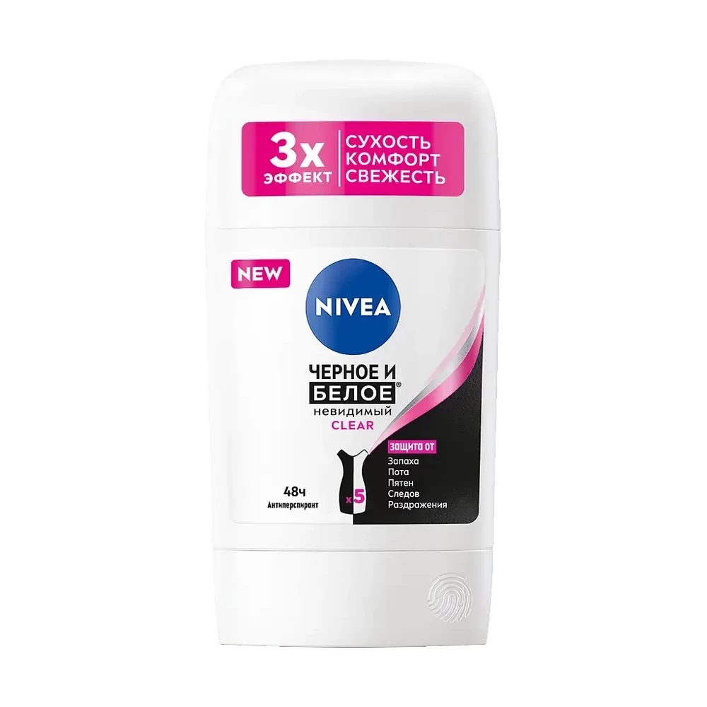 NIVEA Дезодорант-антиперспирант стик Черное и Белое Невидимый Clear (50 мл)