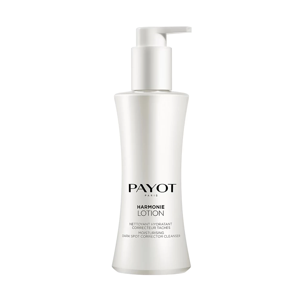 Очищайте кожу правильно и бережно. Используйте лосьон линии Harmonie. Он не повреждает защитный барьер, деликатно удаляет декоративную косметику и себум, насыщает кожу полезными компонентами и предотвращает появление пигментных пятен. Основные компоненты Payot Harmonie Lotion Moisturising Dark Spot Corrector Cleanser: гиалуроновая кислота — наполняет клетки влагой; экстракт лунного камня — нормализует состояние кожи, насыщает ценными микроэлементами; ПАВ натурального происхождения — пшеница и кукуруза; ниацинамид 2% — устраняет тусклость, выравнивает тон кожи, помогает сохранить ее упругость; витамин С — осветляет, уменьшает выработку меланина. Флакон средства изготовлен из переработанного пластика.