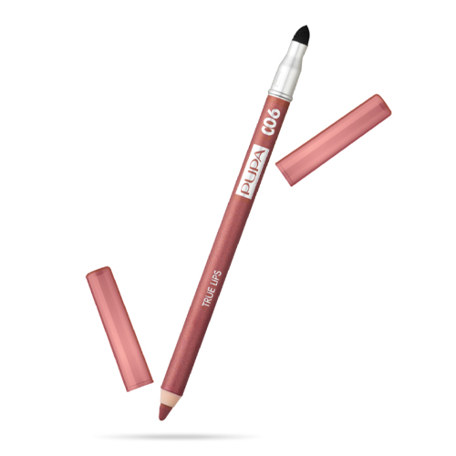 PUPA Карандаш для губ TRUE LIPS. Ультра пигментированный карандаш насыщенного цвета для идеально очерченных и выделенных губ рисует мягкую и плавную линию, обеспечивает безупречный устойчивый контур. Масла жожоба и семян хлопка оказывают увлажняющие и смягчающие действия. На конце карандаша находится удобный аппликатор для растушёвки, который можно использовать для смягчения контурной линии и создания основы для устойчивости и выразительности в макияже губ. Нанесите карандаш начиная с центра верхней губы и нарисуйте сплошной, тонкий контур. Теперь нанесите на нижнюю губу, где, напротив, следует двигаться от внешних уголков к центру. При помощи встроенного спонжика растушуйте контур по направлению к внутренней части губ.