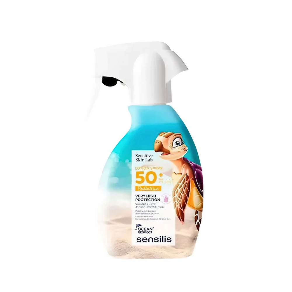 Sensilis Pediatrics Lotion Spray Солнцезащитный спрей на водной основе SPF 50+, обеспечивающий очень высокий успокаивающий эффект и незаметное покрытие.
