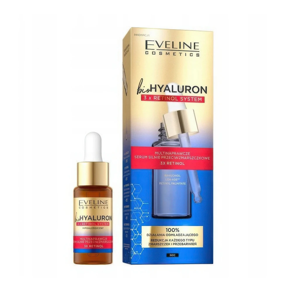 СЫВОРОТКА ДЛЯ ЛИЦА EVELINE BIOHYALURON 3X RETINOL SYSTEM ПРОТИВ МОРЩИН МУЛЬТИРЕГЕНЕРИРУЮЩАЯ НОЧНАЯ 1
