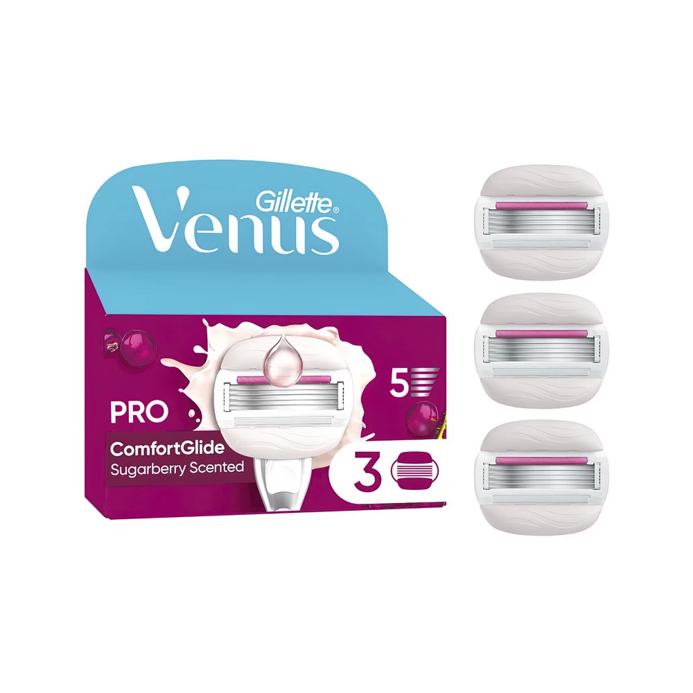 Сменные кассеты для бритья Venus Sugarberry подарят вашей коже чувство комфорта с женской бритвой Comfort Glide из Olay. Подвижные увлажняющие подушечки содержат легкие масла для тела, благодаря которым бритва плавно скользит по коже.
