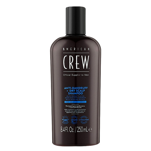American Crew Anti-Dandruff + Dry Scalp Shampoo, 250 мл, - это эффективное средство для борьбы с перхотью и сухостью кожи головы. Шампунь содержит пиритион цинка, который устраняет перхоть и предотвращает её появление, а также увлажняющие компоненты, которые снимают раздражение и успокаивают кожу головы. Подходит для ежедневного использования, оставляя волосы чистыми и свежими.