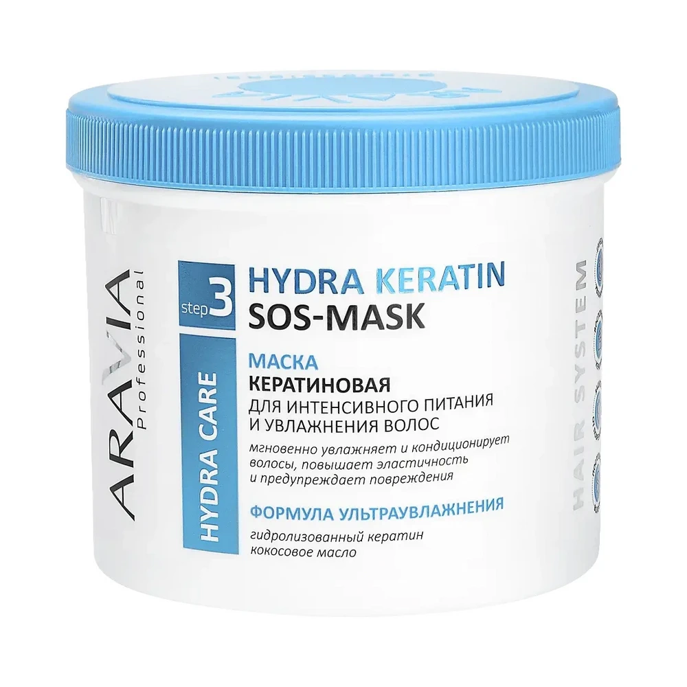 ARAVIA Professional Маска кератиновая для интенсивного питания и увлажнения волос Hydra Keratin Mask, 550 мл