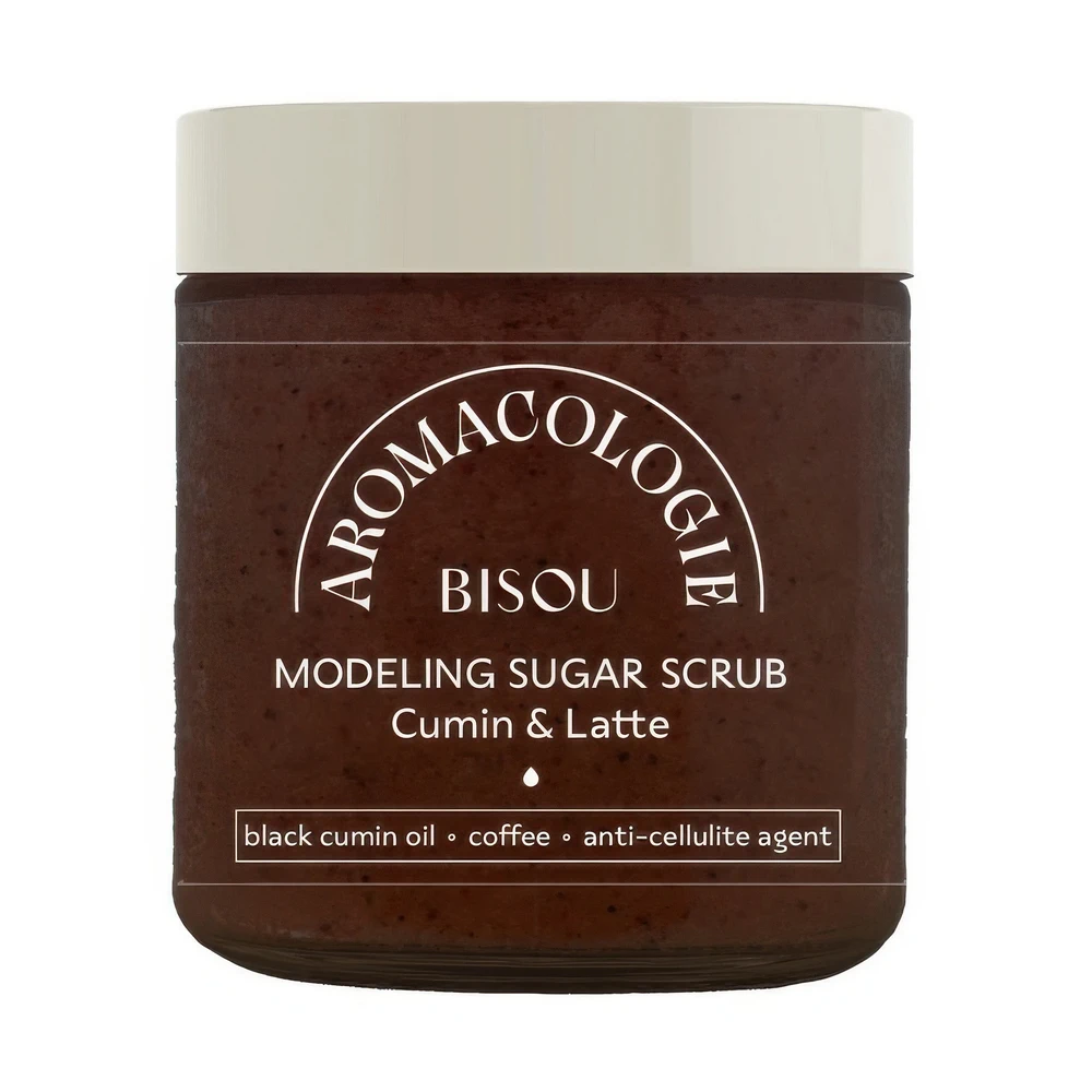 BISOU Aromacologie Скраб для тела Моделирующий с черным тмином и латте – объем 250 мл. Этот скраб обладает уникальной формулой, в состав которой входят черный тмин и латте. Черный тмин известен своими антисептическими и укрепляющими свойствами, а латте способствует улучшению упругости кожи. Скраб эффективно удаляет омертвевшие клетки, улучшая текстуру кожи и способствуя её выравниванию. Благодаря своей текстуре, скраб легко наносится и смывается, оставляя кожу мягкой, гладкой и увлажненной. Подходит для ежедневного использования, особенно если ваша цель – улучшить контуры тела и подтянуть кожу.
