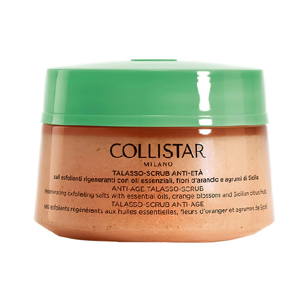 Anti-Age Talasso Scrub итальянского бренда Collistar разработан для борьбы с возрастными изменениями кожного покрова: вялость, потеря тонуса, ухудшение микроциркуляции, неоднородный цвет и ороговевшие дольки. Антивозрастной талассоскраб с обновленной формулой на основе эфирных масел сицилийского цитруса и цвета апельсина. Бьюти-продукт удаляет все загрязнения, разглаживает морщинки на теле, ускоряет обновление и оздоровление кожи, борется с пигментацией. Масло макадамии, токоферол и порошок кожуры лимона интенсивно питают и подтягивают кожу. Collistar Anti-Age Talasso Scrub – ухаживать за собой так легко и приятно!