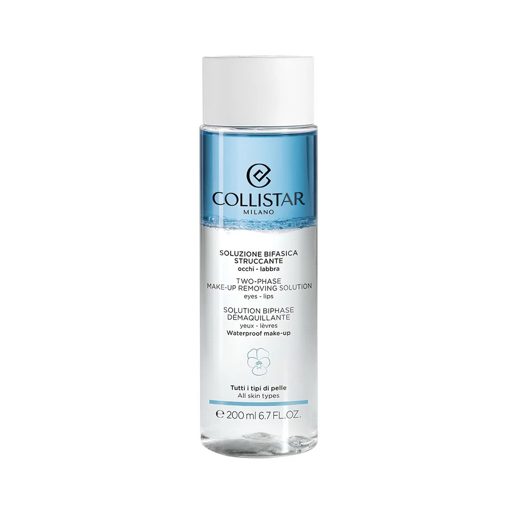 Collistar Make-Up Remover Two-Phase — двухфазное средство мгновенно и деликатно удаляет даже стойкий макияж с лица, глаз и губ, не оставляя жирного блеска. Сочетание водной и масляной фаз эффективно растворяет косметику.