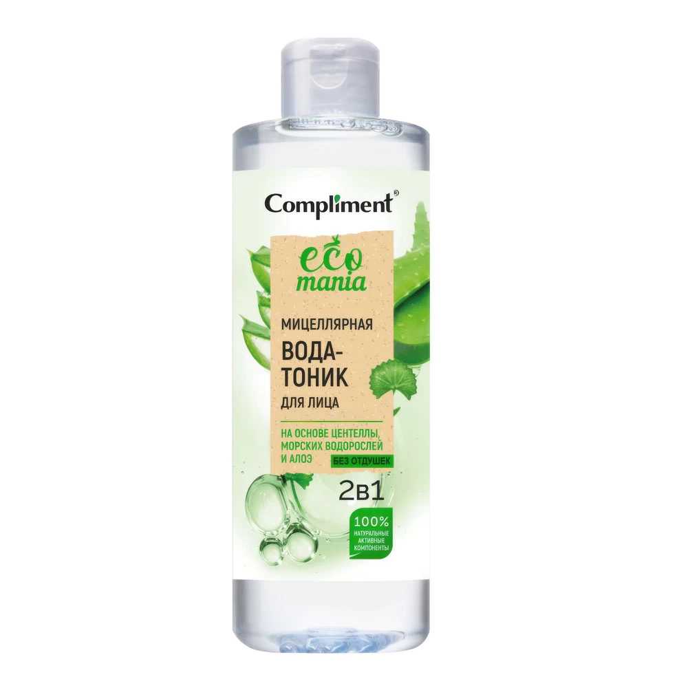 Compliment Ecomania мицеллярная вода – тоник для лица 2в1 на основе центеллы, морских водорослей и алоэ, 400мл