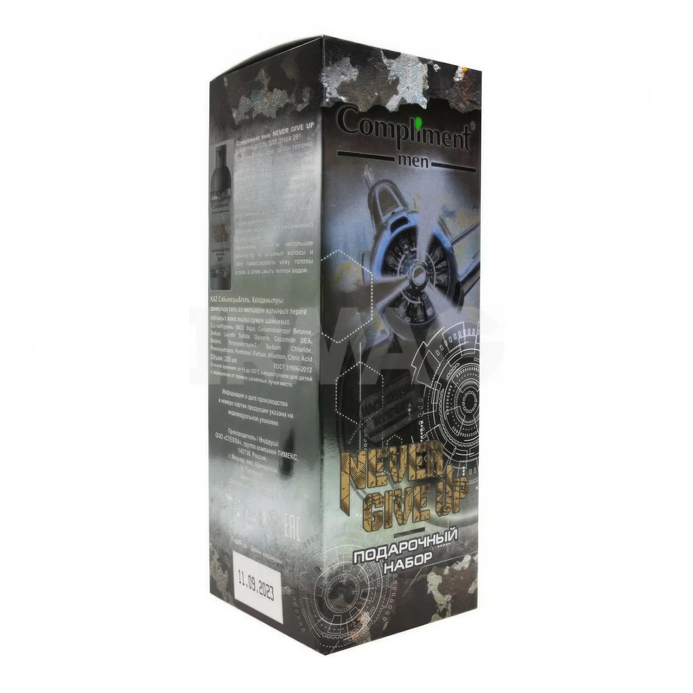 Compliment men Never give up ПН №1921 (Шампунь&Гель для душа, 250мл + Гель для бритья, 80мл + Лосьон после бритья, 80мл + мочалка для душа)