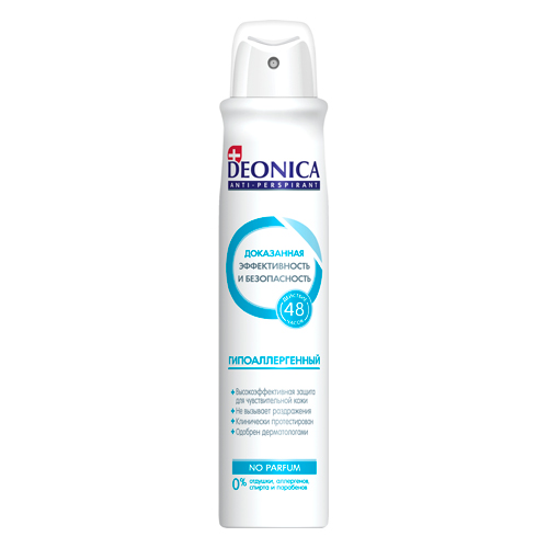 Гипоаллергенный антиперспирант нового поколения Deonica разработан специально для людей с чувствительной и сухой кожей, склонной к раздражениям. Эффективность дезодоранта подтверждается многочисленными испытаниями в независимых европейских лабораториях, а уникальная формула состава одобрена ведущими дерматологами России и Европы.