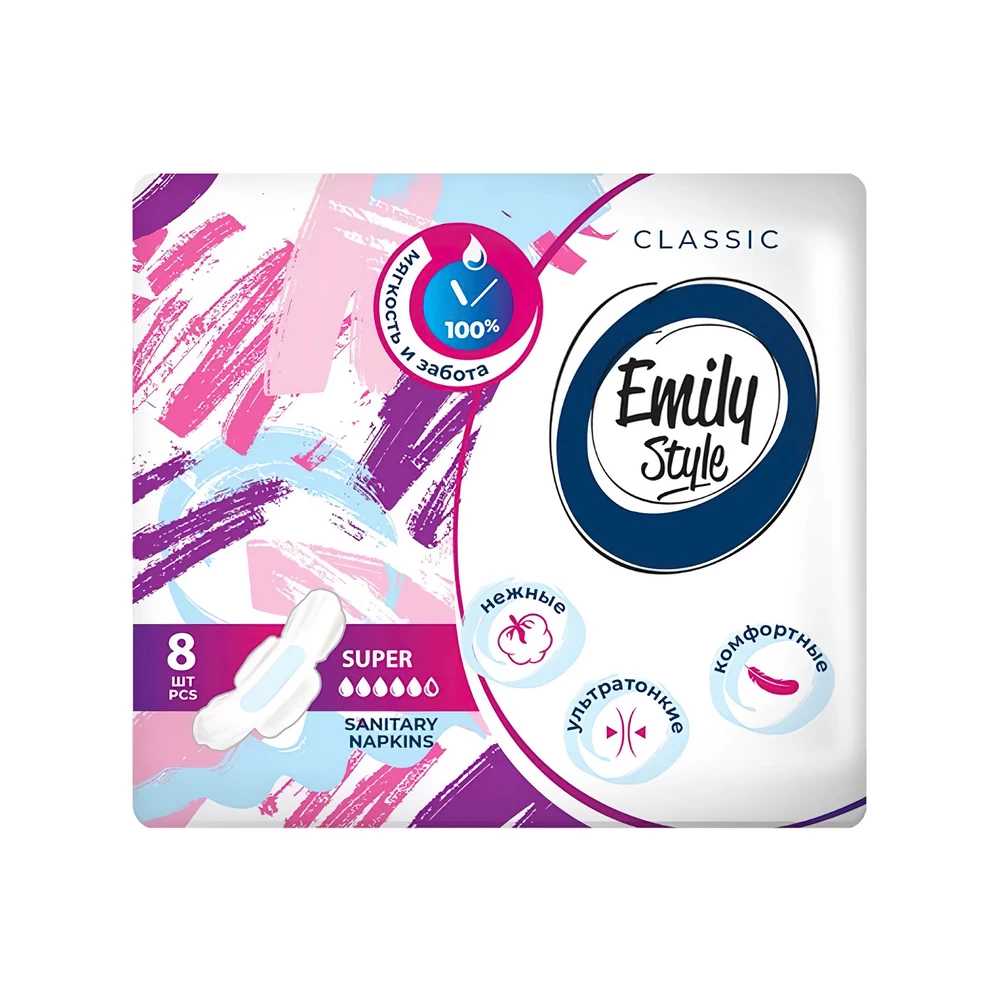 Emily STYLE CLASSIС прокладки критика SUPER 8шт УЛЬТРАТОНКИЕ, удлиненные, больше впитываемость