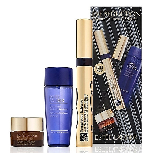В этом наборе вы найдете: Тушь для ресниц Sumptious Extreme, придающая объем, утолщающая. Ресницы как будто умножаются, утолщаются, удлиняются до предела. Sumptious Extreme создает сверхстандартный объем, приподнимает и подкручивает ресницы, создавая эффект накладных ресниц. Взгляд становится ярче, шире и соблазнительнее. Нежное средство для снятия макияжа с глаз Эта неагрессивная формула бережно и быстро удаляет с глаз все следы рассыпчатых теней и другого макияжа. Удаляет макияж, не оставляя жирных следов, что позволяет сразу же нанести повторно после очищения. Безмасляная формула не повреждает нежную кожу. Advanced Night Repair Eye Supercharged Gel-Creme Синхронизированный мультивосстанавливающий крем для глаз Начните сегодня вечером, зарядите кожу вокруг глаз, чтобы придать ей более яркий, расслабленный вид, полный жизненной силы. Осветляет темные круги всего за 2 недели. Морщины и появление первых признаков старения уменьшаются.