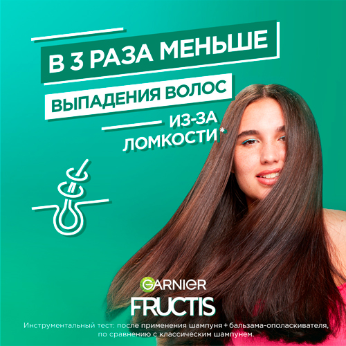 СЛАБЫЕ, ХРУПКИЕ ВОЛОСЫ? Fructis представляет систему усиления, которая сочетает в себе суперфрукт натурального происхождения с активными ингредиентами. Ваши волосы выглядят более здоровыми и сильными. Бальзам-ополаскиватель Рост Во Всю Силу обогащен двумя суперингредиентами: Экстрактом яблока и Ниацином, для придания волосам жизненной силы, сияния и восстановлении прочности волос. Доказано! Волосы становятся более прочными, стойкими и сияющими от корней до кончиков.