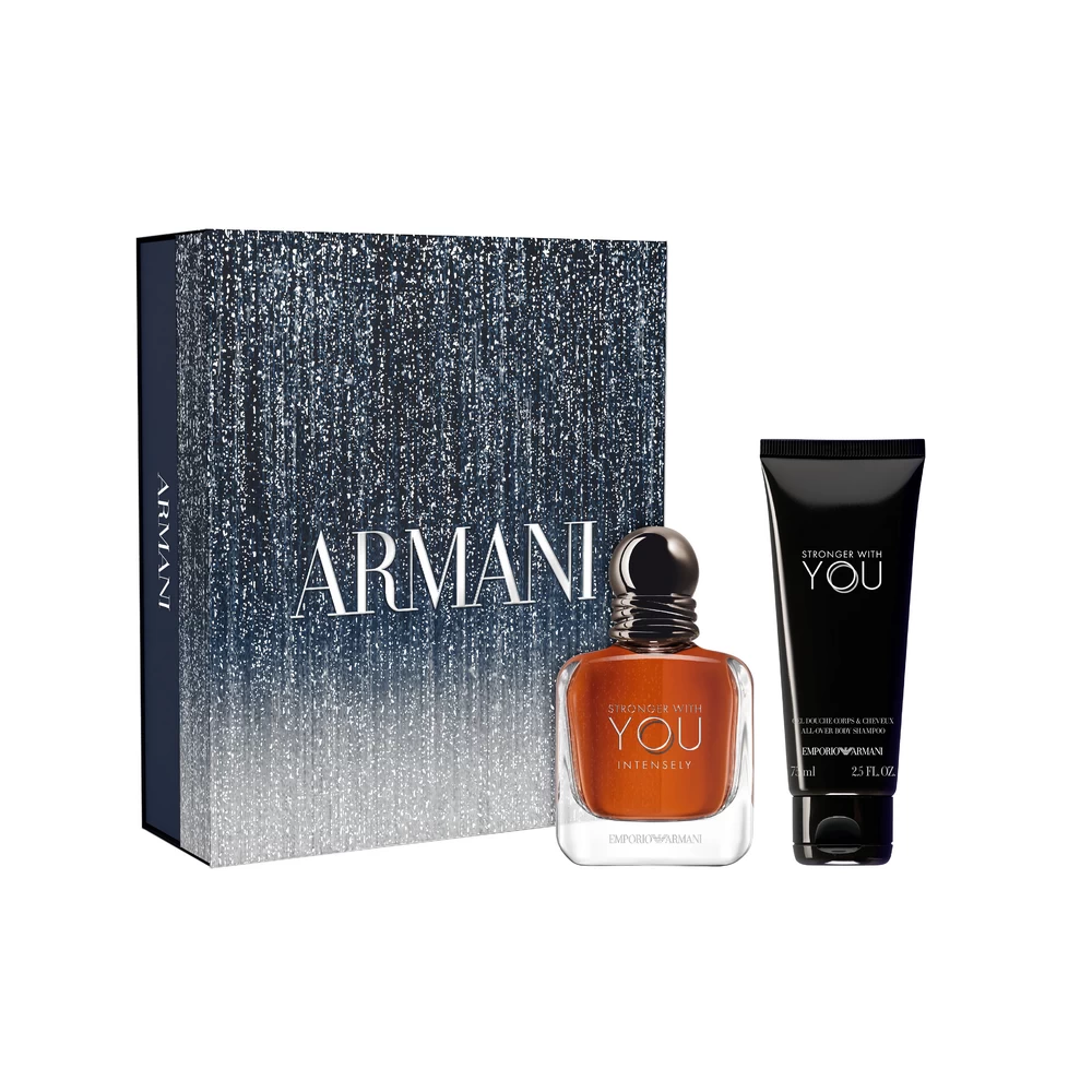 В этом праздничном сезоне подарочный набор ARMANI украшен блестками, демонстрируя ослепительный сине-серебряный градиент. Откройте свой праздничный подарочный набор и влюбитесь в неповторимые культовые ароматы ARMANI. Этот мужской подарочный набор Stronger With You содержит Stronger With You Intensely 50 мл и гель для душа Stronger With You Intensely 75 мл.