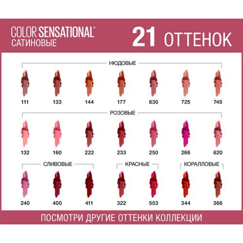 Помада Color Sensational кремовой текстуры с разнообразной палитрой оттенков подарит твоим губам насыщенный цвет. Формула с маслом ши обеспечивает эффективное увлажнение нежной кожи губ и безупречно ровное покрытие.