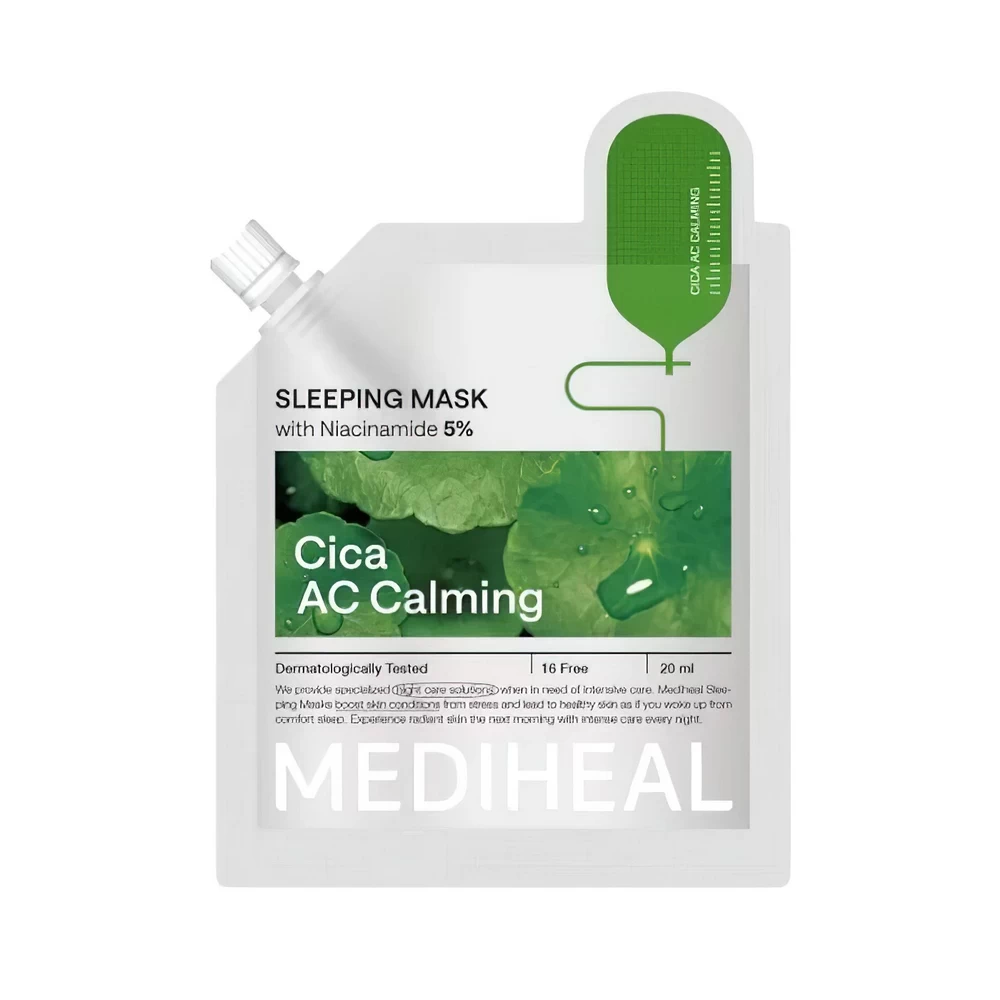 MEDIHEAL CICA AC CALMING SLEEPING MASK — успокаивающая ночная маска с центеллой азиатской (Cica), созданная для восстановления и защиты кожи во время сна. Активный комплекс на основе экстракта центеллы, мадекассосида и пантенола снижает раздражение, уменьшает покраснения и поддерживает естественный барьер кожи. Лёгкая кремовая текстура быстро впитывается, не оставляя липкости, и глубоко увлажняет, помогая коже проснуться мягкой, гладкой и свежей. Подходит для чувствительной, проблемной и раздражённой кожи.
