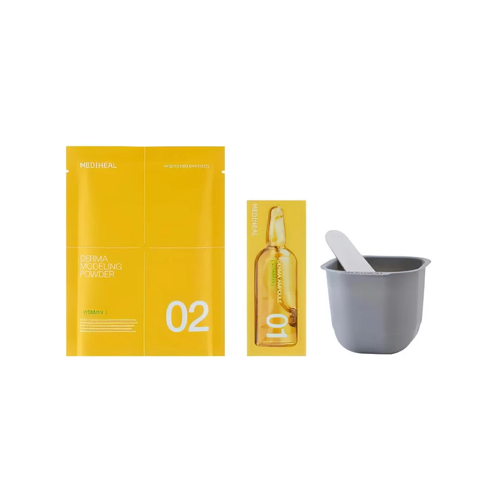 MEDIHEAL DERMA MODELING PACK [VITAMIN BRIGHTENING] — набор для моделирующей маски с витаминным комплексом, направленный на выравнивание тона и придание коже сияния. Активные ингредиенты способствуют уменьшению тусклости, осветлению пигментации и восстановлению естественного цвета лица. Плотная альгинатная текстура маски плотно прилегает к коже, удерживая влагу и полезные вещества, что усиливает эффективность ухода. Подходит для всех типов кожи, особенно тусклой и с признаками усталости.
