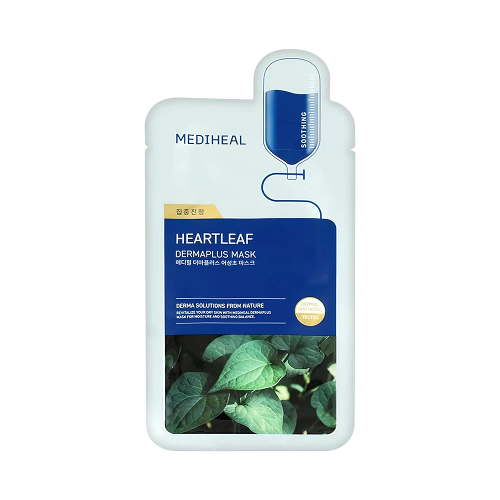 MEDIHEAL DERMAPLUS HEARTLEAF MASK — увлажняющая и успокаивающая тканевая маска с экстрактом иерихонской травы (Heartleaf), которая помогает снизить раздражение, покраснение и воспаления кожи. Формула глубоко увлажняет, укрепляет защитный барьер и способствует восстановлению естественного баланса кожи. Маска плотно прилегает к лицу, обеспечивая эффективное проникновение активных компонентов. После применения кожа становится мягкой, свежей и спокойной, с ровным и ухоженным видом.