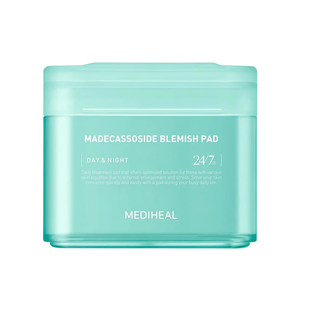 MEDIHEAL MADECASSOSIDE BLEMISH PAD — успокаивающие тонер-пэды с мадекассосидом, разработанные для ухода за чувствительной и проблемной кожей. Пэды мягко очищают и тонизируют кожу, снимают раздражения, уменьшают покраснения и поддерживают защитный барьер. Формула увлажняет и успокаивает, улучшает текстуру кожи и придаёт ощущение комфорта. Идеальны для ежедневного использования, особенно после стрессовых факторов или уставшей кожи.