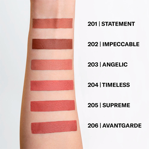 Матовая помада для гламурных бархатистых губ. Текстура моделирует и разглаживает, обеспечивая чистый цвет и беспрецедентную трехмерность. Благодаря маслам и воскам, содержащимся в формуле, губы кажутся напитанными, пухлыми и покрытыми экстремально матовым цветом. Матовая помада с насыщенным ровным матовым цветом; Мягкая текстура, питает и разглаживает губы; Чистый и яркий цвет. Без жестокости и веганский. Формула без парабенов и жидкого парафина. Дерматологически протестировано.