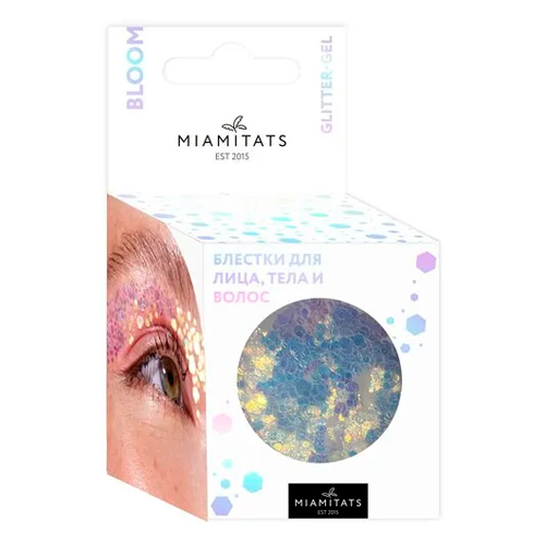 Глиттер-гель для лица, тела и волос - необычное и очень стильное украшение, созданное известным брендом переводных татуировок MIAMITATS. Текстура нашего глиттер-геля уникальна - она не сухая, но при этом и не жидкая. Для его нанесения не нужна кисть и специальный фиксатор. После нанесения нет эффекта стягивания, а вокруг при высыхании геля не образуется белой корочки.