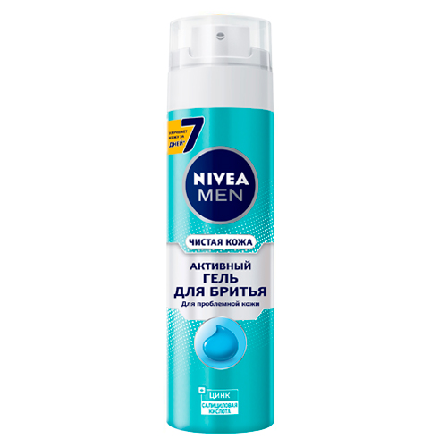 Новый гель для бритья Nivea men обеспечивает супергладкое скольжение лезвия и защищает кожу от порезов. Формула геля содержит супер-ингредиенты: салициловую кислоту и цинк, Которые помогают заметно Сократить прыщи и предотвратить раздражение.