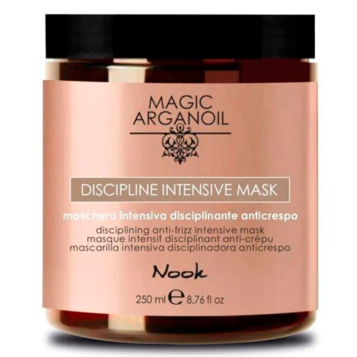 NOOK MAGIC ARGANOIL DISCIPLINE Intensive Mask Дисциплинирующая маска интенсивного действия с антифриз-эффектом для жестких и плотных волос. Обогащена органическим аргановым маслом, маслом берберийской фиги, финиковым маслом. ПРЕИМУЩЕСТВА: - Идеальна для сухих, пушащихся, очень непослушных пористых волос как прямых, так и вьющихся. - Оказывает эффективное дисциплинирующее действие, устраняет пушистость, контролирует объем, защищает от повышенной влажности. - Глубоко питает, регенерирует и укрепляет структуру волос. - Придает волосам потрясающий блеск, мягкость и шелковистость, делает их послушными. Подходит и для химически обработанных волос. ТЕСТ НА СОДЕРЖАНИЕ МЕТАЛЛОВ: НИКЕЛЬ - ХРОМ - КОБАЛЬТ БЕЗ: SURFACTANT SULPHATE- SLES - PARABENS