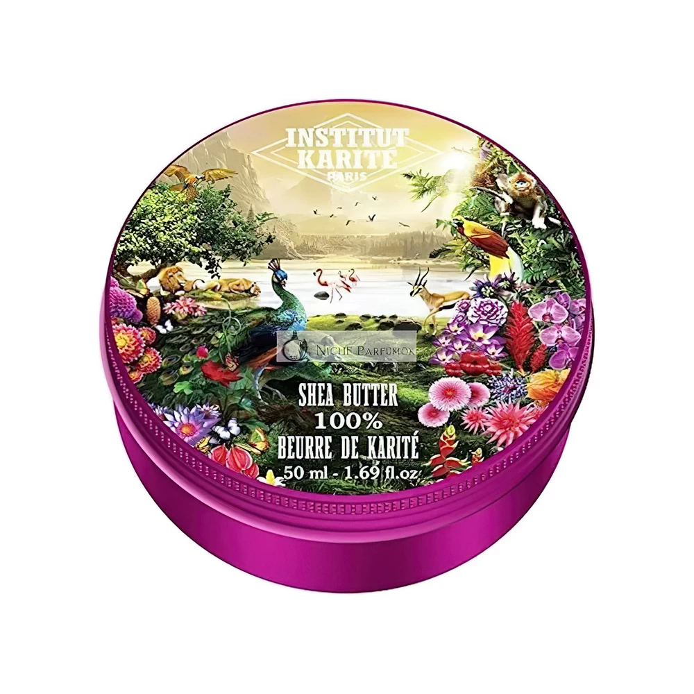 Institut Karité Paris 100% Pure Shea Butter Jungle Paradise — 100% натуральное масло ши для лица, тела и волос. Масло ши, или масло карите — уникальный продукт с интенсивными питательными, восстанавливающими, увлажняющими, успокаивающими и смягчающими свойствами. Благодаря удобному футляру баттер удобно брать с собой в путешествие, тем более что он один заменяет собой целый арсенал ухаживающих средств.
