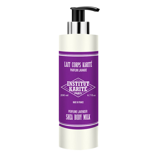 Institut Karite Paris Shea Body Milk Lavender — молочко для тела с ароматом лаванды, ароматом, который снимает напряжение и уносит от повседневных проблем в вечное лето, на цветущие лавандовые поля в Провансе. Лосьон с нежной консистенцией тает на коже и быстро впитывается без липких и жирных следов. Формула содержит масло ши, известное своими смягчающими, увлажняющими, успокаивающими и восстанавливающими свойствами. Молочко наполняет кожу комфортом, делает ее мягкой, эластичной, с приятным ароматом. Удобный флакон с дозатором позволяет легко отмерять нужное количество средства. Shea Body Milk Lavender подходит для любого типа кожи, особенно для сухой.