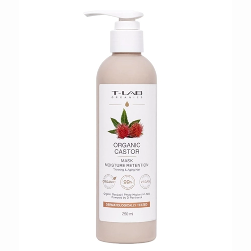 T-LAB ORGANICS Укрепляющая и придающая энергию маска для тонких, поврежденных волос с касторовым маслом, 250 мл.