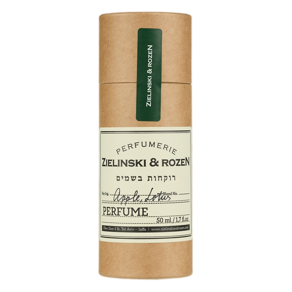 Необычная комбинация нот дала неожиданно красивый результат. Яблочный аккорд привнес в композицию свежую фруктовую зелень. А лотос — дурманящую терпкую сладость с пряным привкусом. И нет человека, который не изумился бы, насколько элегантным получился этот контраст. Духи собраны из натуральных ингредиентов, которыми славится израильский бренд Zielinski & Rozen. Флакон темного стекла дополнен золотистым или серебристым колпачком.